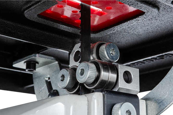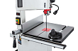 Данная модель имеет максимальное для своего класса оснащение и, кроме привычных «обязательных» функций и настроек, у нее есть и все вспомогательные. Среди них рычаг для быстрого ослабления и натяжения полотна, позволяющий одним движением переводить станок из состояния хранения в рабочее. Светодиодная подсветка рабочей области с гибким штативом. Патрубок аспирации со ступенчатым подключением шланга диаметром 50, 75 или 100 мм.