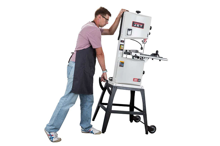 JWBS-12SL – сравнительно крупная и мощная ленточная пила для любительской работы с заготовками высотой до 170 мм. Модель оборудована большим чугунным столом и двухскоростной ременной передачей: высшая ступень обеспечивает высокую производительность по неплотным породам, низшая для твердой древесины, склонной к образованию прижогов.