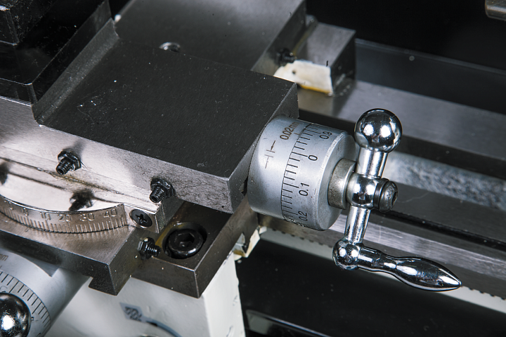 Станок справится с обработкой заготовки диаметром до 180 мм над станиной и 110 мм над суппортом, расстояние между центрами составляет 350 мм. К данной модели станка не придется докупать индикатор частоты вращения шпинделя, индикатор уже смонтирован в крышку передней бабки. Чтобы снизить стоимость BD-7 и снизить шум при его работе, инженеры JET применили оригинальное техническое решение: шестерни станка выполнены из так называемой «пластиковой стали». Этот материал называется POM, он не уступает стали по прочности, но существенно дешевле и более неприхотлив в эксплуатации.